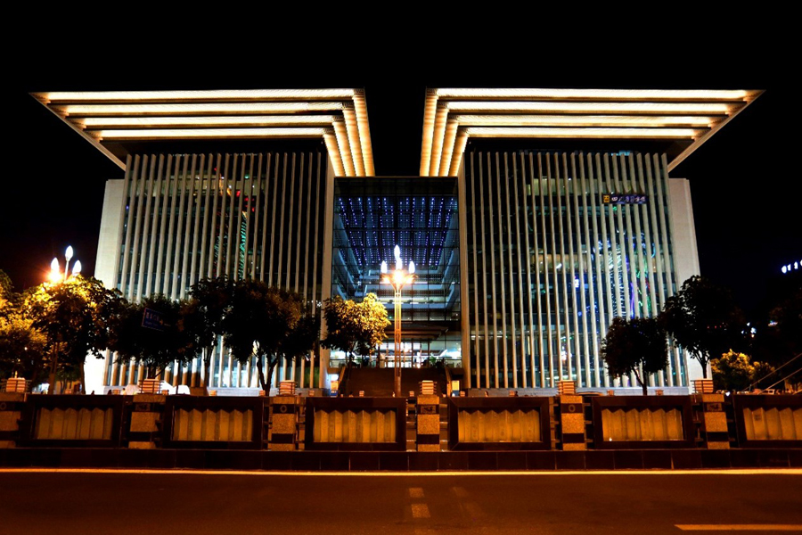 • 四川省圖書館新館 2015年 獲獎情況:魯班獎、天府杯、芙蓉杯;開工時間:2012.02.03,竣工時間:2015.08.24;結構:框架,地上:8層,地下:2層